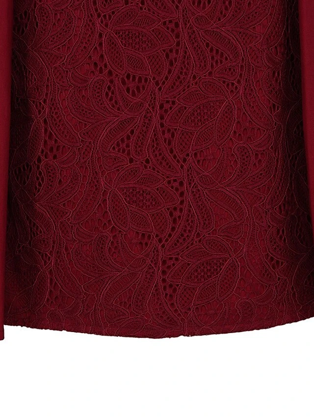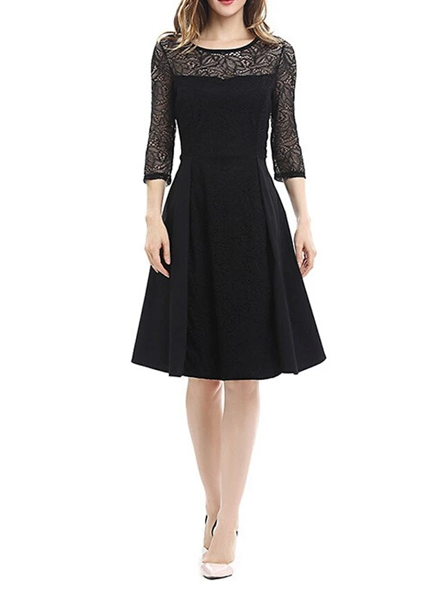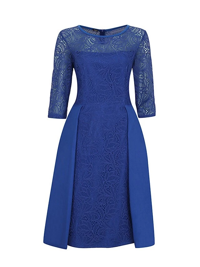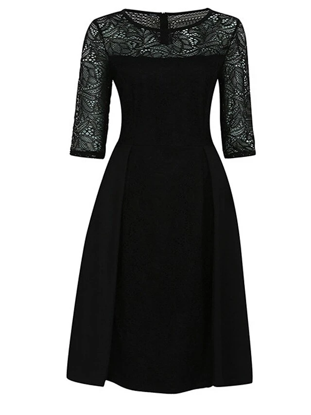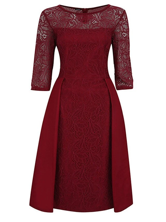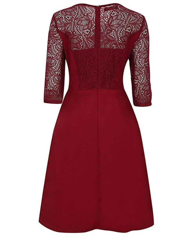 Women’s Party Dress Lace Dress Swing Dress Mini Dress Black Wine Blue 3/4 Length Sleeve Pure Color Lace Spring Fall Winter Crew Neck Fashion Party Spring Dress 2023 S M L XL XXL 3XL 4XL