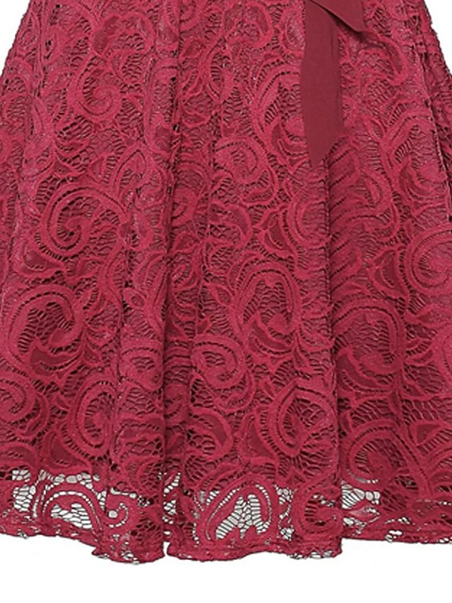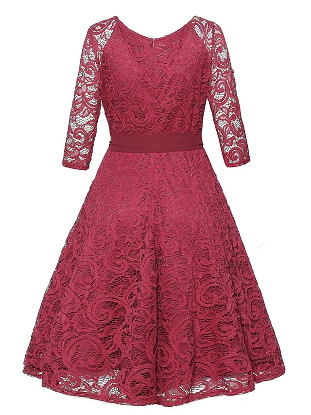 Women’s Party Dress Lace Dress Vintage Dress Midi Dress Wine 3/4 Length Sleeve Pure Color Lace Spring Fall Winter V Neck Fashion Party Evening Party Spring Dress 2023 XS S M L XL XXL
