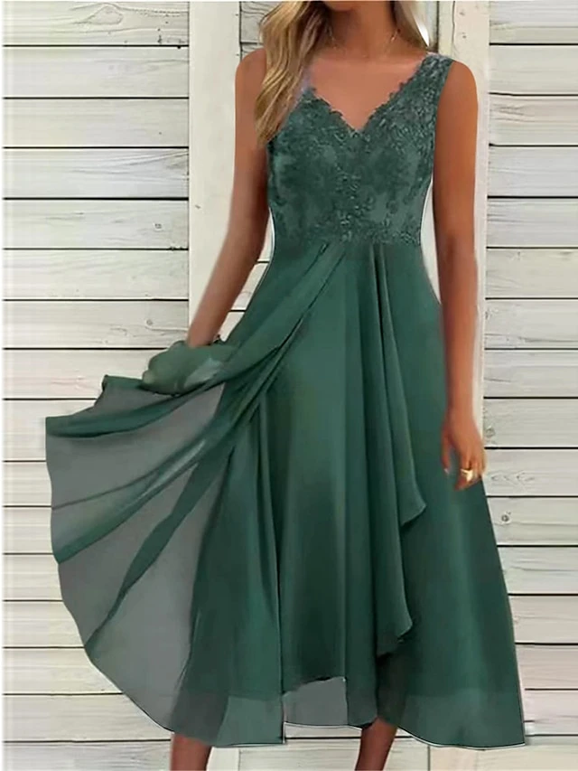 Women’s Party Dress Lace Dress Wedding Guest Dress Midi Dress Blue Green Sleeveless Pure Color Lace Summer Spring Fall Spaghetti Strap Fashion Wedding Guest Vacation Summer Dress 2023 S M L XL 2XL 3XL