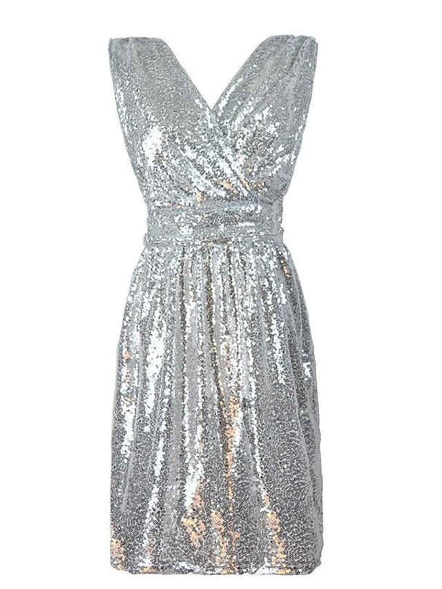 Women’s Party Dress Sequin Dress Metallic Dress Midi Dress Silver Pink Sleeveless Pure Color Sequins Summer Spring Fall V Neck Fashion Party Vacation Summer Dress 2022 S M L XL XXL