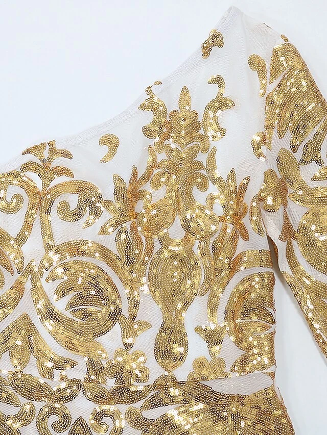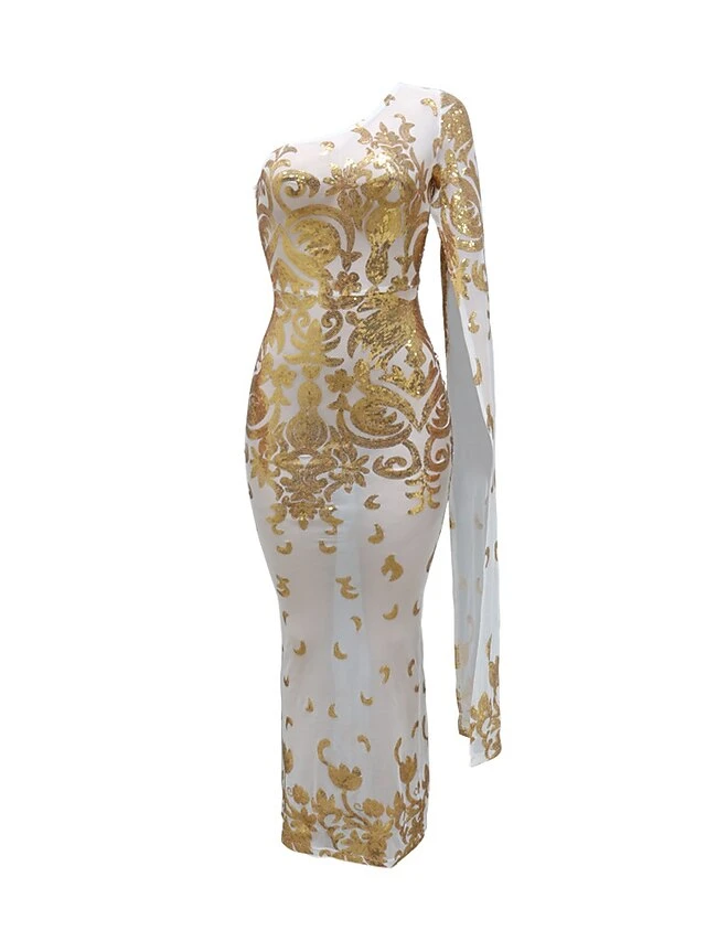 Women’s Party Dress Sequin Dress Sheath Dress Long Dress Maxi Dress Black Gold Long Sleeve Floral Print Spring Fall Winter One Shoulder Fashion Party Winter Dress Evening Party Slim 2023 S M L XL XXL