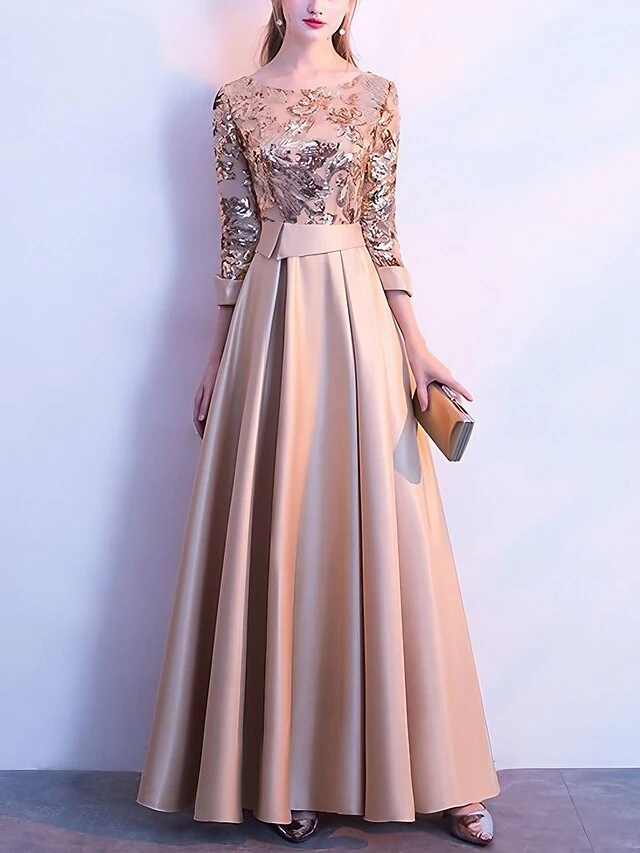 Women’s Party Dress Sequin Dress Swing Dress Maxi Long Dress Silver Champagne Dark Blue 3/4 Length Sleeve Color Block Sequins Winter Fall Spring Crew Neck Fashion Party Evening Party Wedding Guest