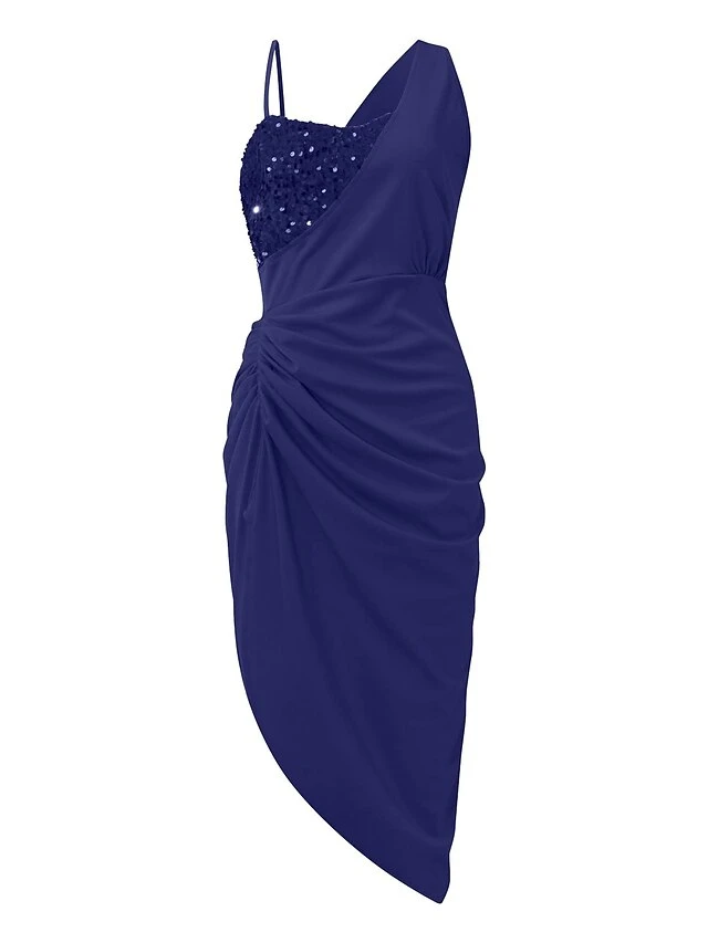 Women‘s Party Dress Wedding Guest Dress Sequin Dress Bodycon Midi Dress Black Dark Blue Red Sleeveless Pure Color Sequins Fall Spring Summer One Shoulder Fashion Party Slim 2023 S M L XL XXL
