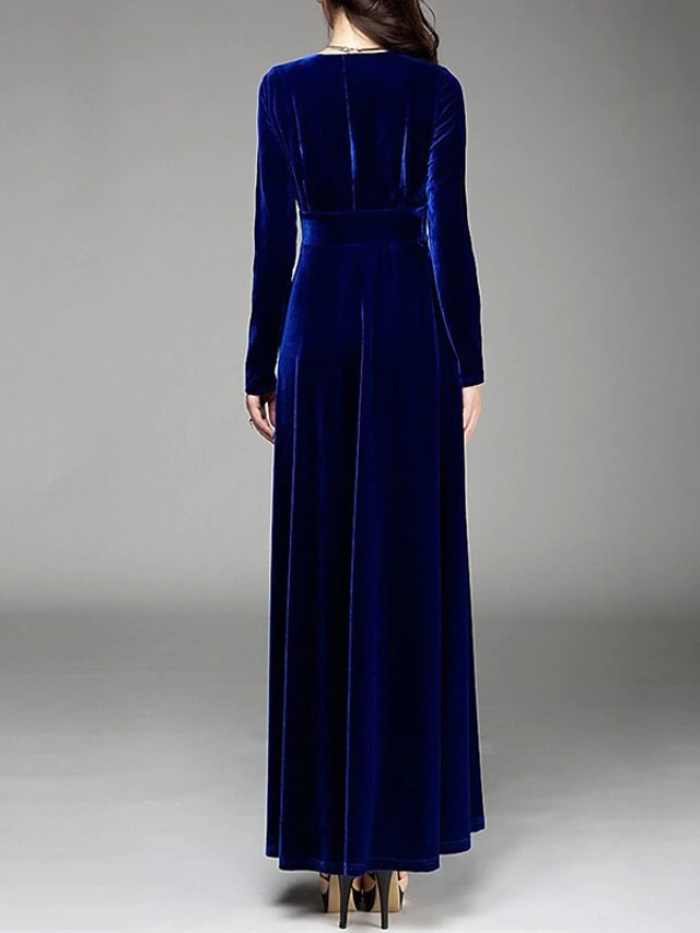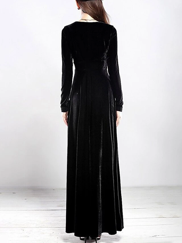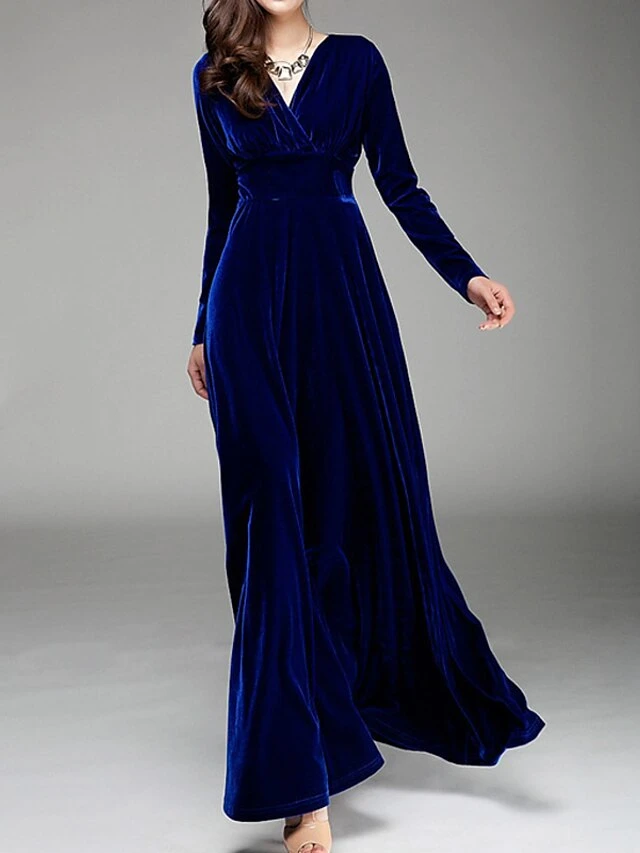 – With a flattering V-neckline and a gorgeous long maxi dress style, this velvet dress is perfect for those who want to look their best and feel comfortable at the same time!