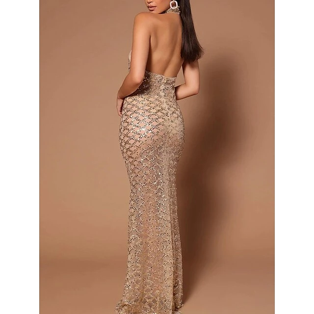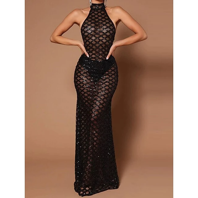 Women’s Prom Dress Party Dress Bodycon Long Dress Maxi Dress Black Beige Sleeveless Pure Color Sequins Fall Winter Autumn Halter Neck Fashion Evening Party Vacation 2023 S M L XL XXL