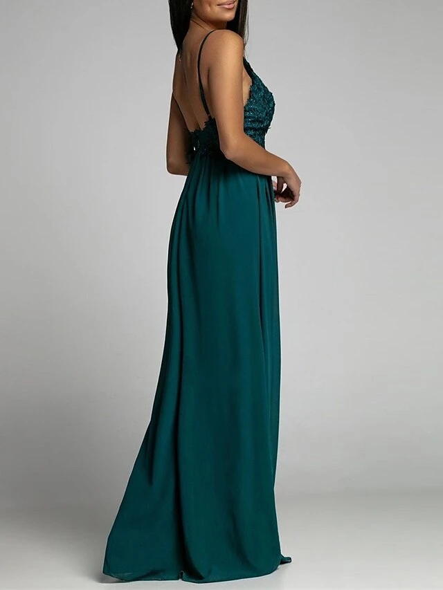 Women’s Prom Dress Party Dress Lace Dress Long Dress Maxi Dress Pink Green Sleeveless Pure Color Lace Summer Spring Spaghetti Strap Party Birthday Wedding Guest Vacation 2023 S M L XL 2XL