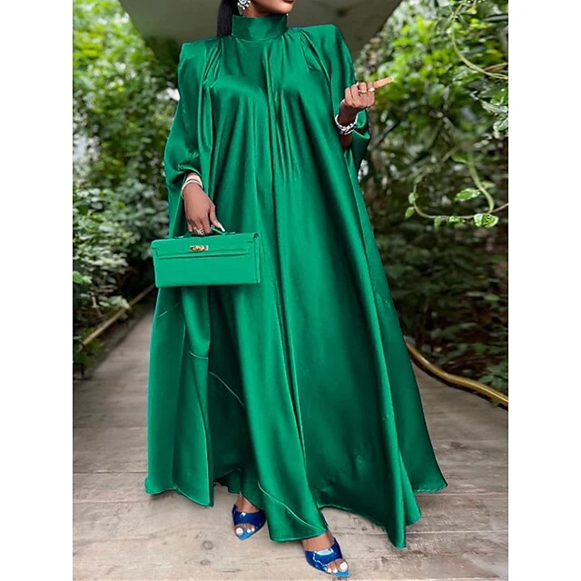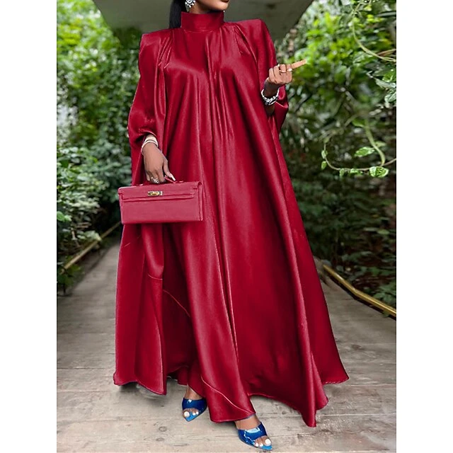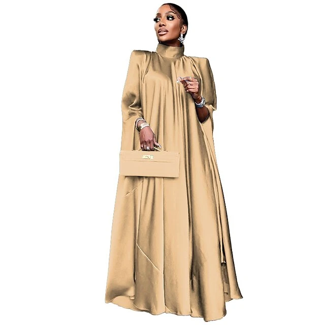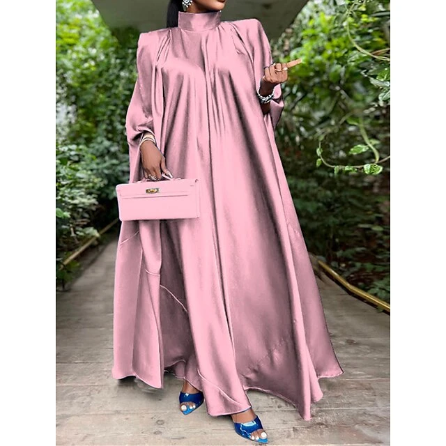 Women’s Prom Dress Party Dress Satin Dress Long Dress Maxi Dress Black Yellow Pink Sleeveless Pure Color Ruched Summer Spring Fall Stand Collar Fashion Birthday Evening Party Wedding Guest 2023 M