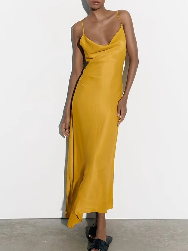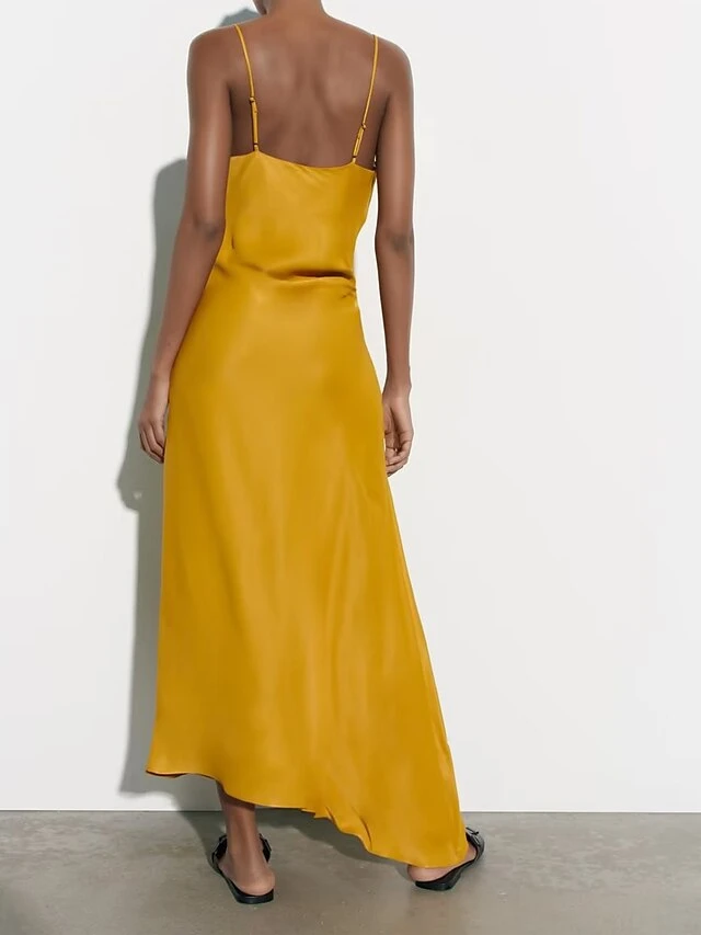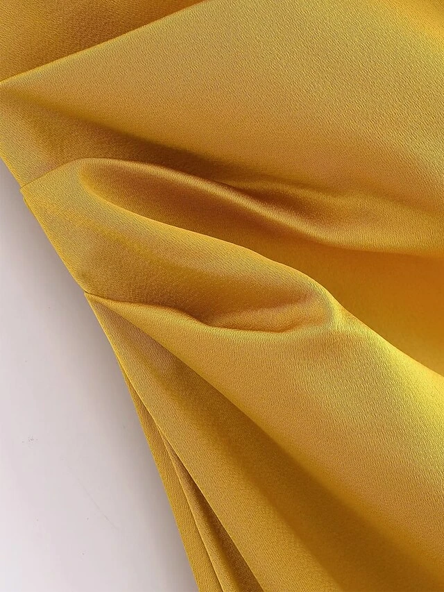 Women’s Prom Dress Party Dress Satin Dress Midi Dress Yellow Pink Sleeveless Pure Color Ruched Fall Winter Autumn Spaghetti Strap Fashion Evening Party Vacation 2023 S M L