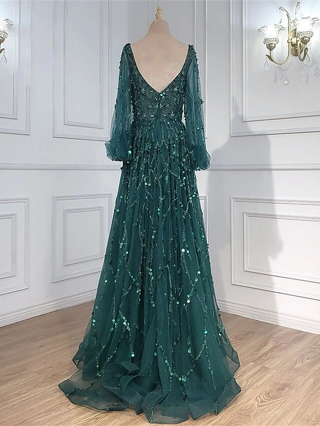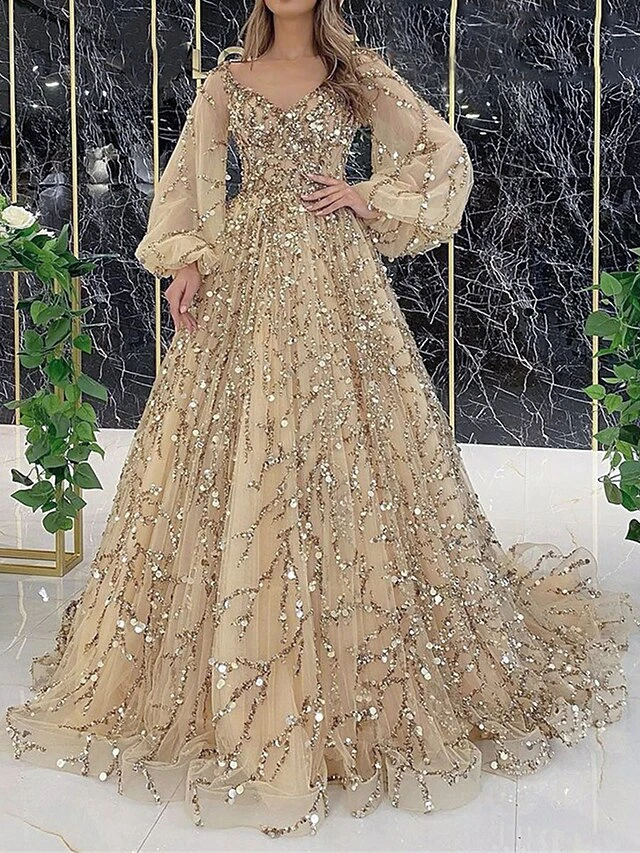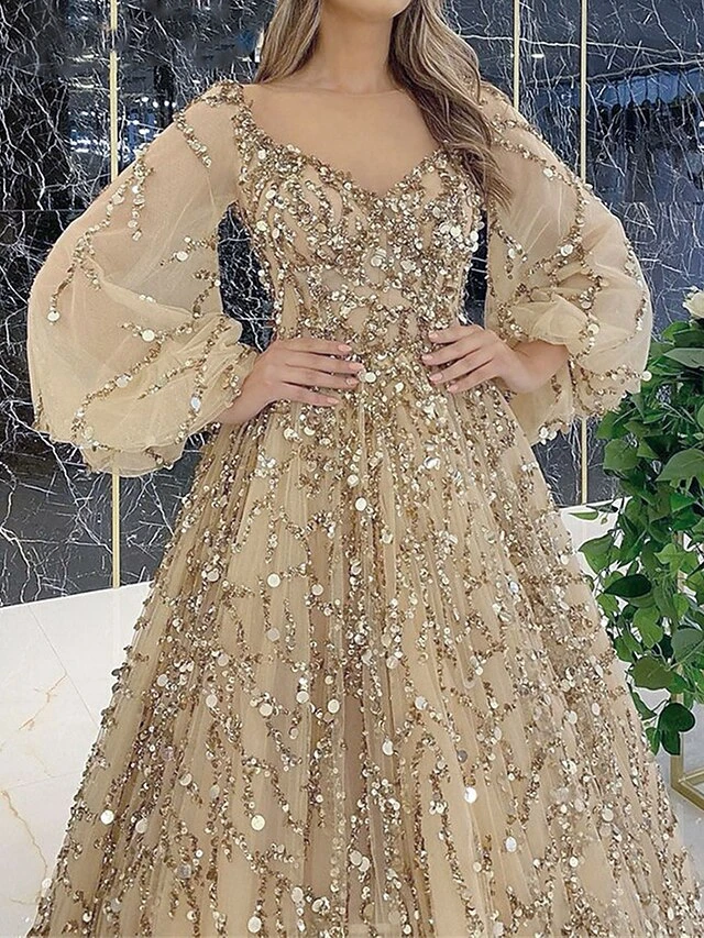Women‘s Prom Dress Party Dress Sequin Dress Long Dress Maxi Dress Pink Gold Green Long Sleeve Pure Color Sparkly Glitter Sequins Spring Fall Winter V Neck Fashion Winter Dress Wedding Guest