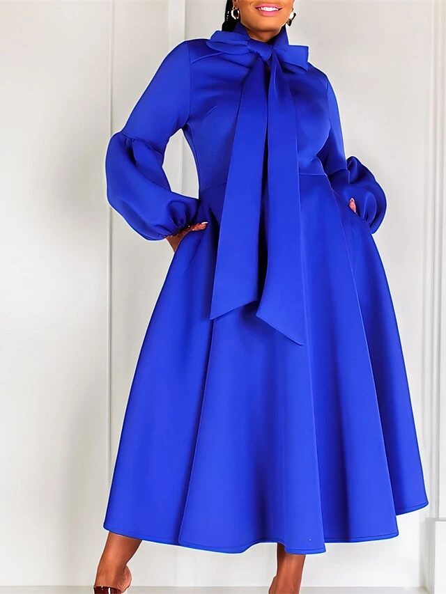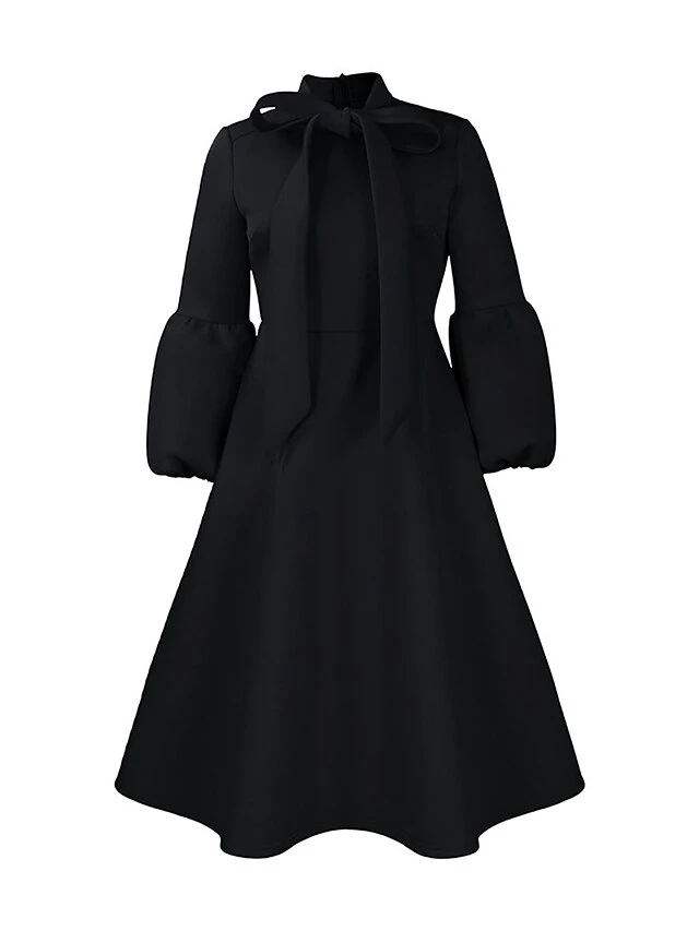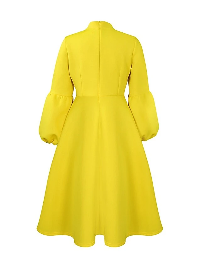 Women’s Prom Dress Party Dress Swing Dress Long Dress Maxi Dress Black Yellow Red Long Sleeve Pure Color Lace Up Fall Winter Autumn Crew Neck Fashion Winter Dress Wedding Guest Birthday 2023 S M L XL