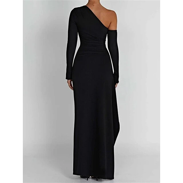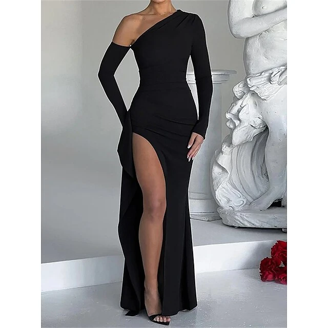 Women’s Prom Dress Party Dress Wedding Guest Dress Long Dress Maxi Dress Black Long Sleeve Pure Color Split Fall Winter Autumn One Shoulder Fashion Winter Dress Wedding Guest Birthday 2023 S M L XL