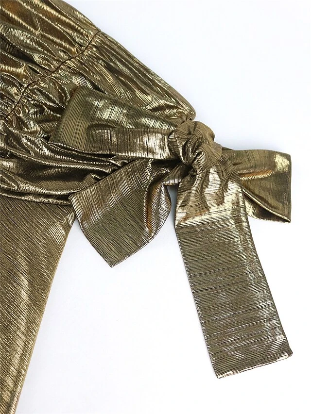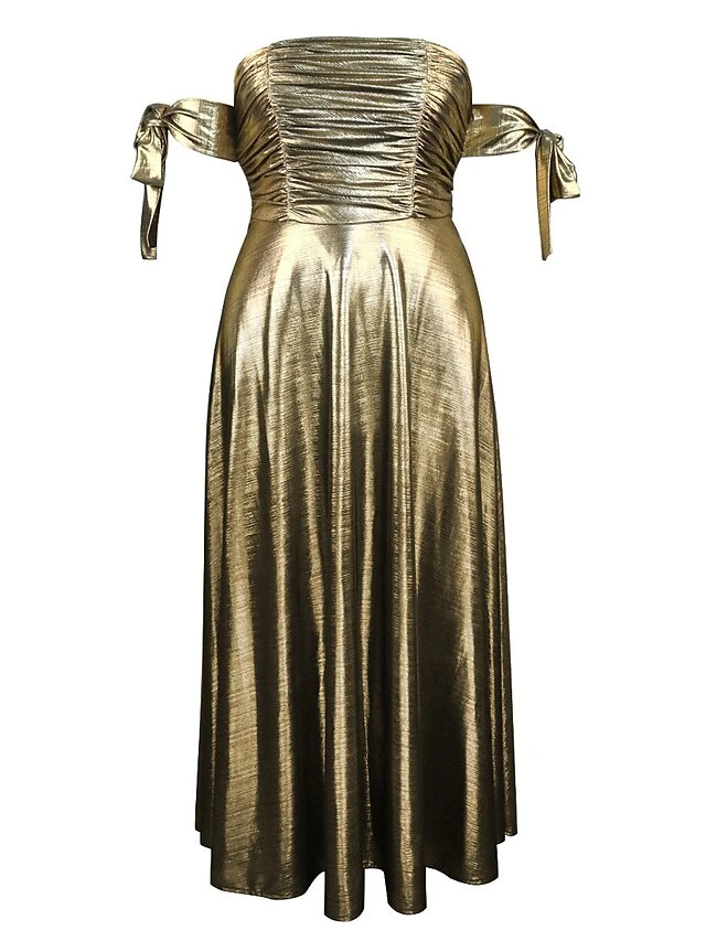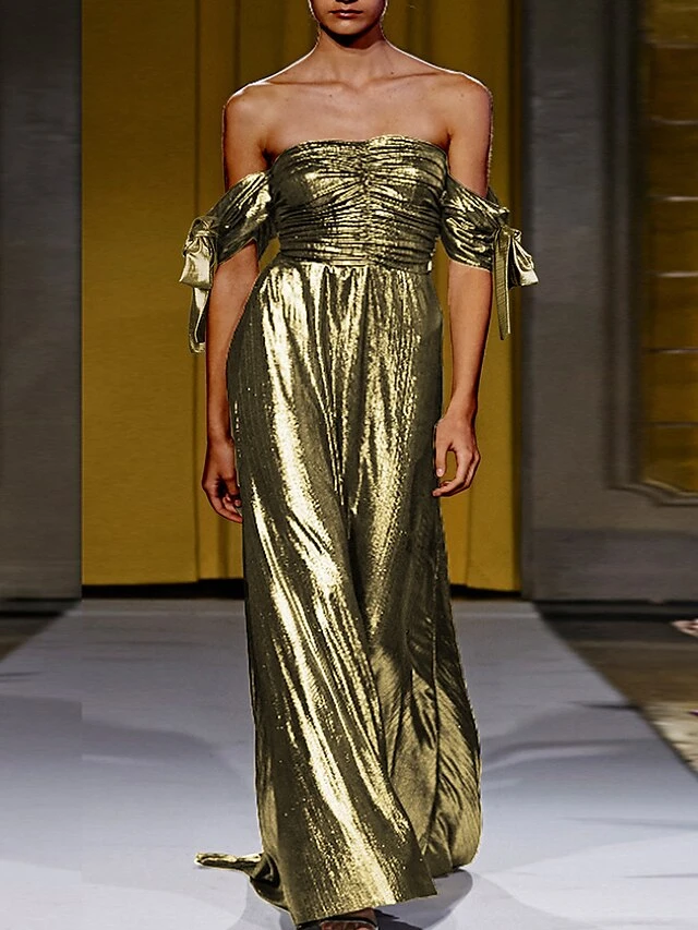Women’s Prom Dress Party Dress Wedding Guest Dress Long Dress Maxi Dress Gold Short Sleeve Pure Color Ruched Summer Spring Fall Strapless Fashion Evening Party Wedding Guest Vacation 2023 S M L XL