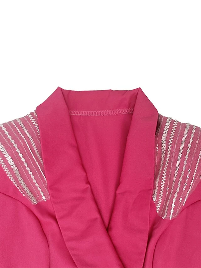Women’s Prom Dress Party Dress Wedding Guest Dress Long Dress Maxi Dress Rose Long Sleeve Color Block Ruched Fall Winter Autumn V Neck Fashion Winter Dress Wedding Guest Evening Party 2023 S M L XL