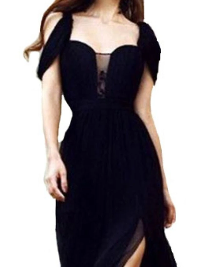 Women’s Prom Party Dress Long Dress Maxi Dress Black Short Sleeve Pure Color Patchwork Spring Summer Square Neck Elegant Party 2023 S M L XL