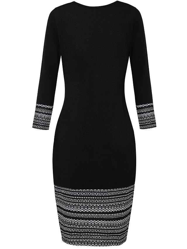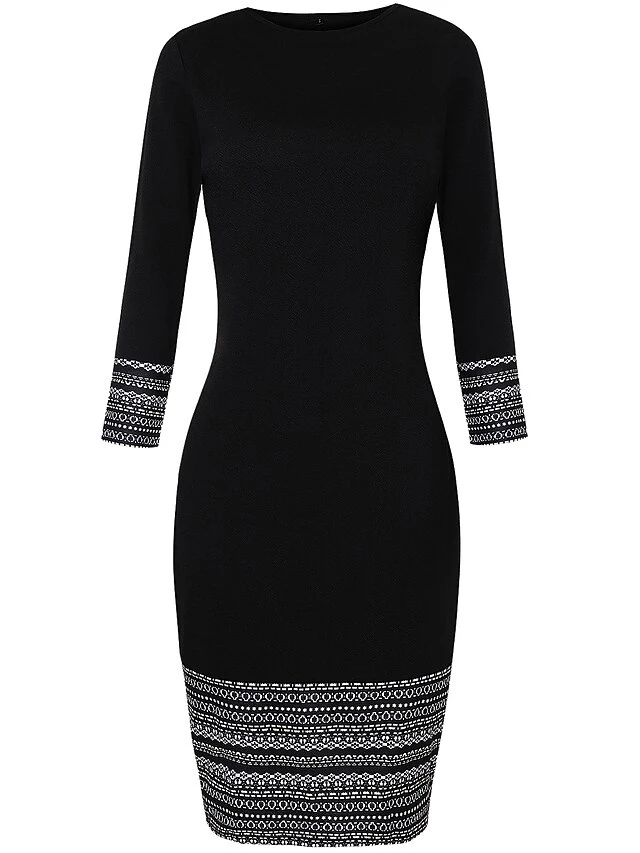 Women’s Shift Dress Church Dress Knee Length Dress Black Long Sleeve Print Print Fall Winter Autumn Crew Neck Elegant Winter Dress Fall Dress 2023 S M L XL XXL