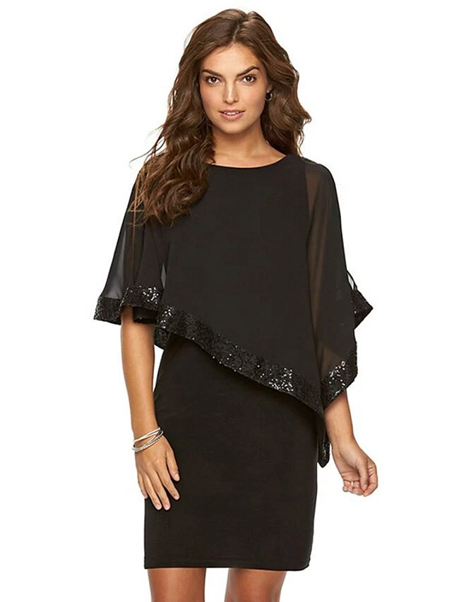 Women’s Shift Dress Mini Dress Black Navy Blue Half Sleeve Pure Color Summer Spring Elegant Party 2023 S M L XL