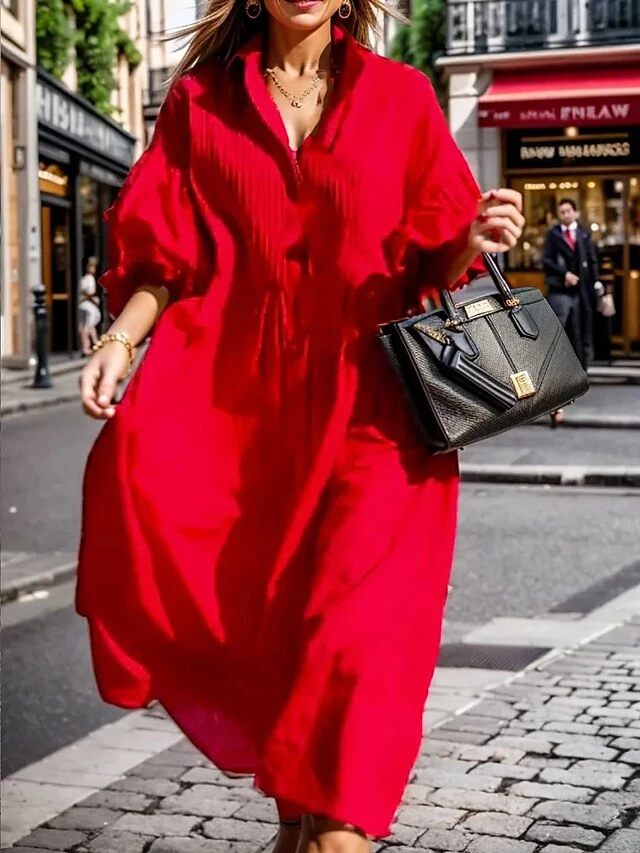 Women’s Shirt Dress Casual Dress Cotton Linen Dress Maxi Long Dress Polyester Belt Not Included Fashion Basic Outdoor Daily Vacation Shirt Collar Ruffle Button Long Sleeve Summer Spring Fall