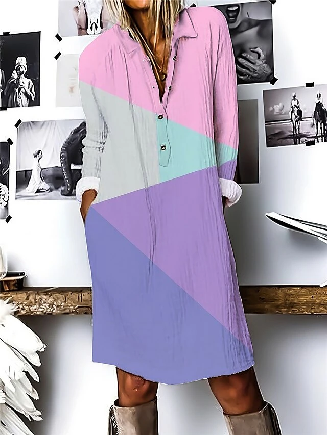 Women’s Shirt Dress Casual Dress Cotton Linen Dress Midi Dress Polyester Fashion Casual Daily Outdoor Daily Vacation Shirt Collar Button Print 3/4 Length Sleeve Fall Winter Autumn 2023 Loose Fit Pink