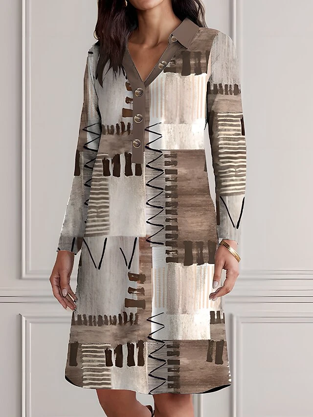 Women’s Shirt Dress Casual Dress Cotton Linen Dress Midi Dress Polyester Fashion Casual Daily Outdoor Daily Vacation Shirt Collar Button Print 3/4 Length Sleeve Spring Fall Winter 2023 Loose Fit Blue