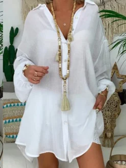 Women’s Shirt Dress Casual Dress Cotton Linen Dress Mini Dress Cotton Blend Casual Outdoor Daily Vacation Shirt Collar Button Long Sleeve Summer Spring Fall 2023 Loose Fit Black White Blue Pure Color