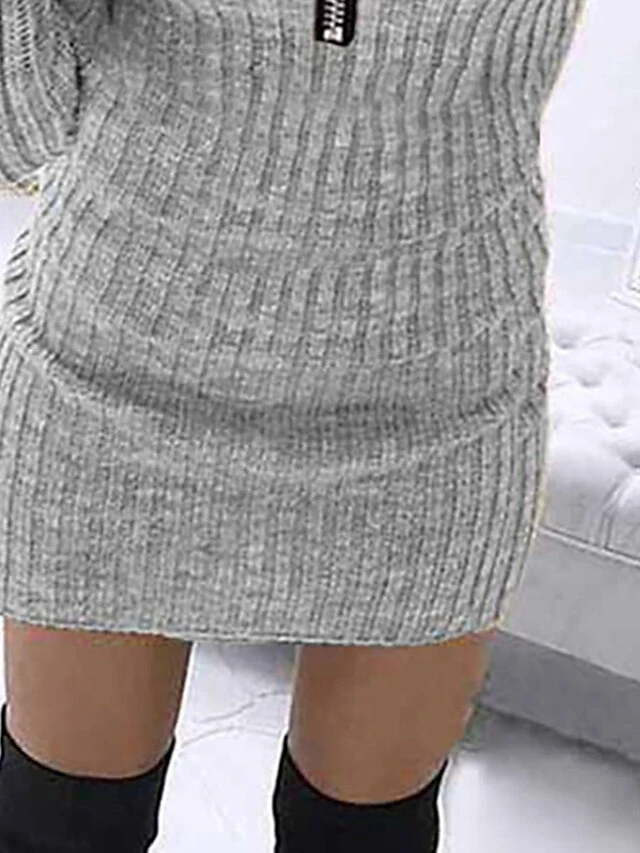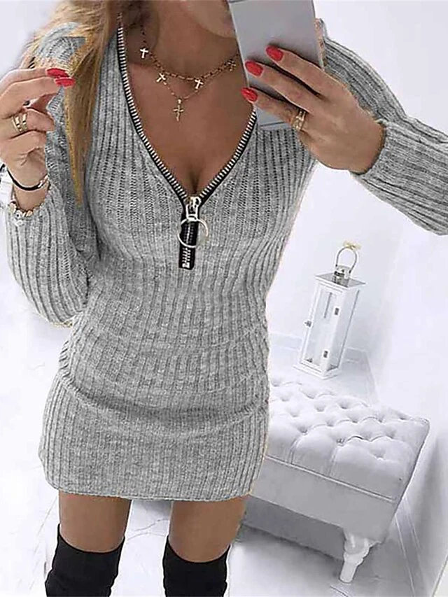 Women’s Sweater Dress Jumper Dress Casual Dress Mini Dress Warm Pure Color Outdoor Casual Daily Going Out V Neck Long Sleeve Zipper 2023 Slim Gray S M L XL