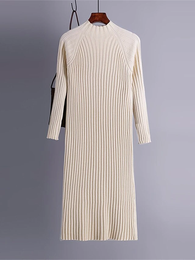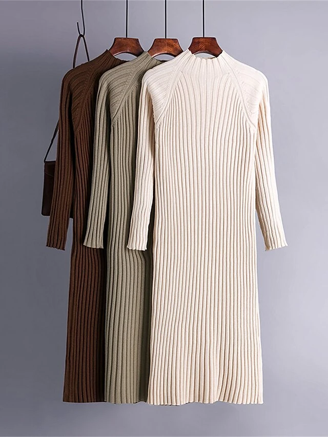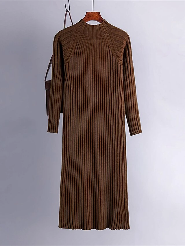 Women’s Sweater Dress Jumper Dress Winter Dress Midi Dress Warm Plain Outdoor Daily Vacation Going Out Turtleneck Long Sleeve 2023 Loose Fit Black Brown Khaki One Size