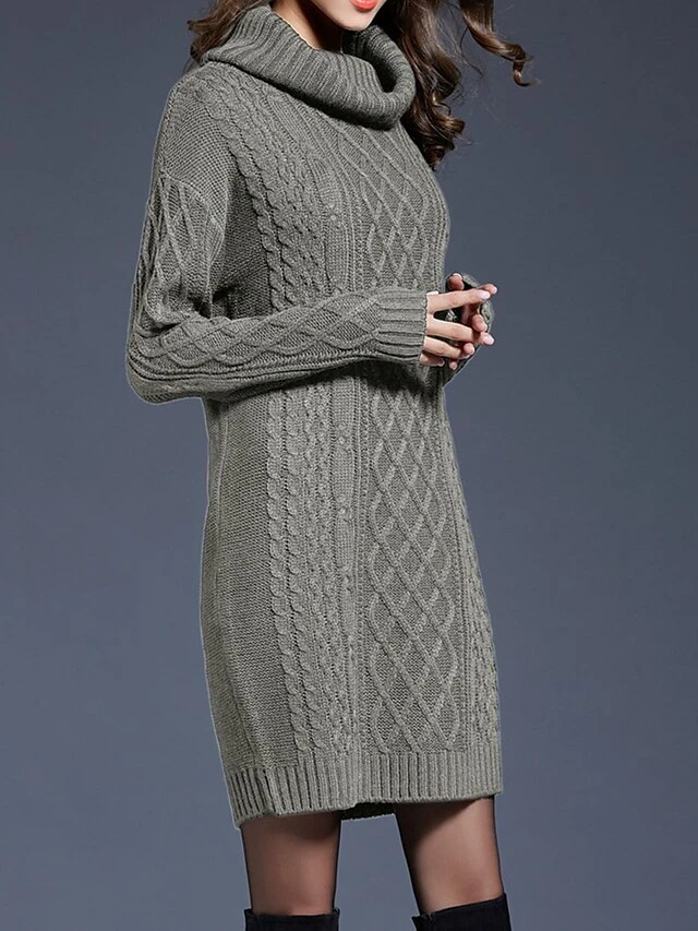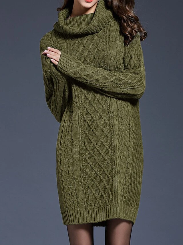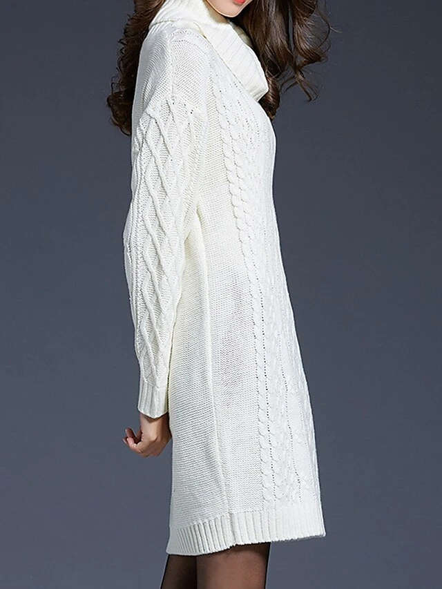 Women’s Sweater Dress Jumper Dress Winter Dress Mini Dress Warm Plain Outdoor Daily Holiday Vacation Turtleneck Long Sleeve 2023 Loose Fit White Wine Blue M L XL XXL 3XL