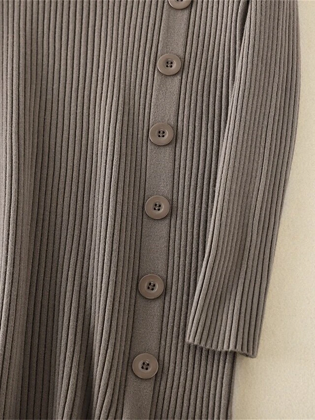 Women’s Sweater Dress Jumper Dress Winter Dress Mini Dress Warm Plain Outdoor Daily Vacation Going Out Turtleneck Long Sleeve Button 2023 Slim Black Brown Khaki One Size