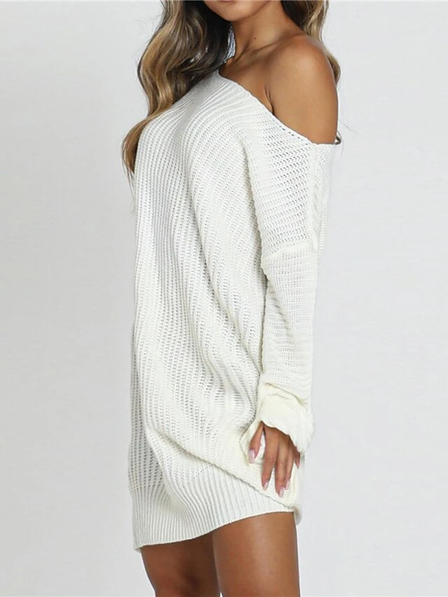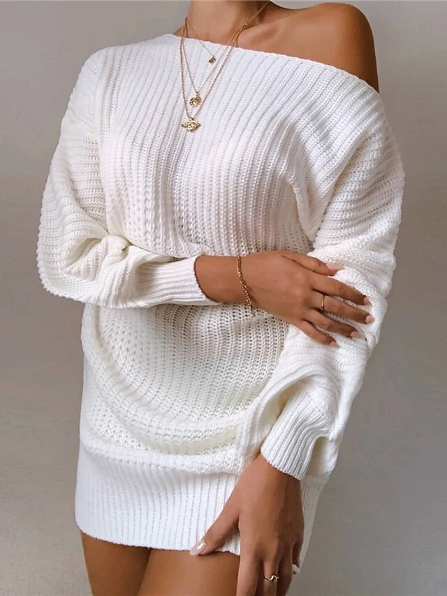 Women‘s Sweater Dress Winter Dress Black Wine Khaki White Long Sleeve Backless Winter Fall Off Shoulder Hot Casual Fit S M L XL Cotton