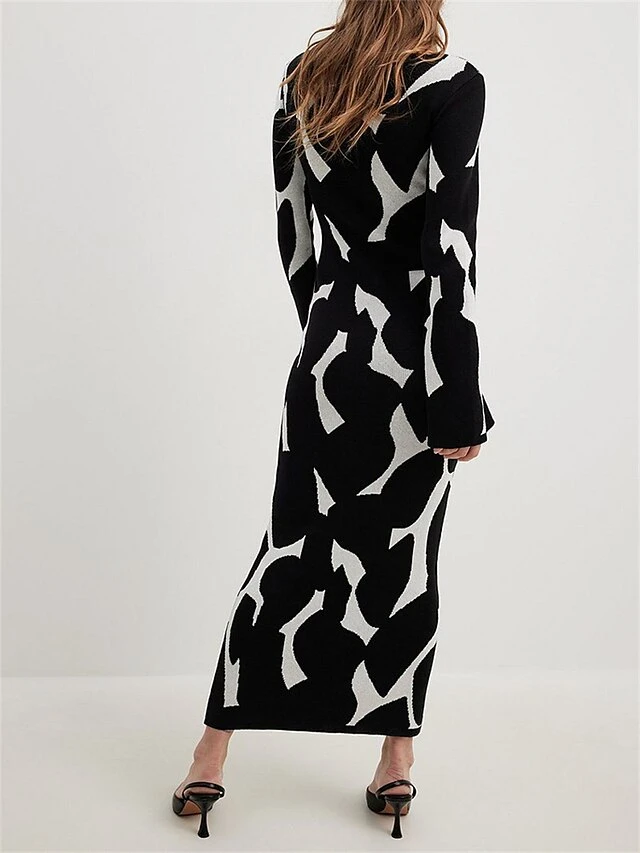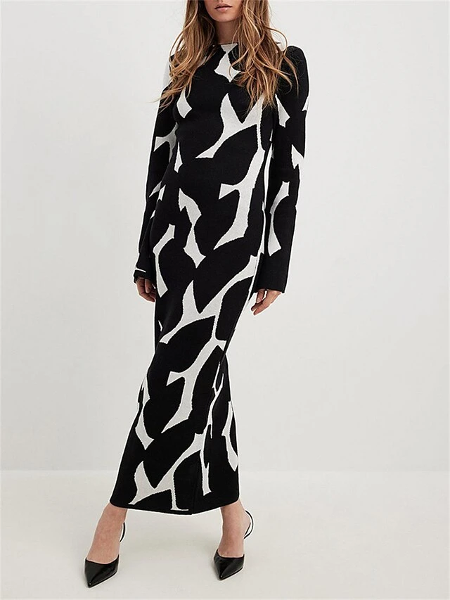 Women’s Sweater Dress Winter Dress Jumper Dress Long Dress Maxi Dress Fashion Leopard Outdoor Daily Holiday Date Crew Neck Long Sleeve Print 2023 Slim Black S M L XL