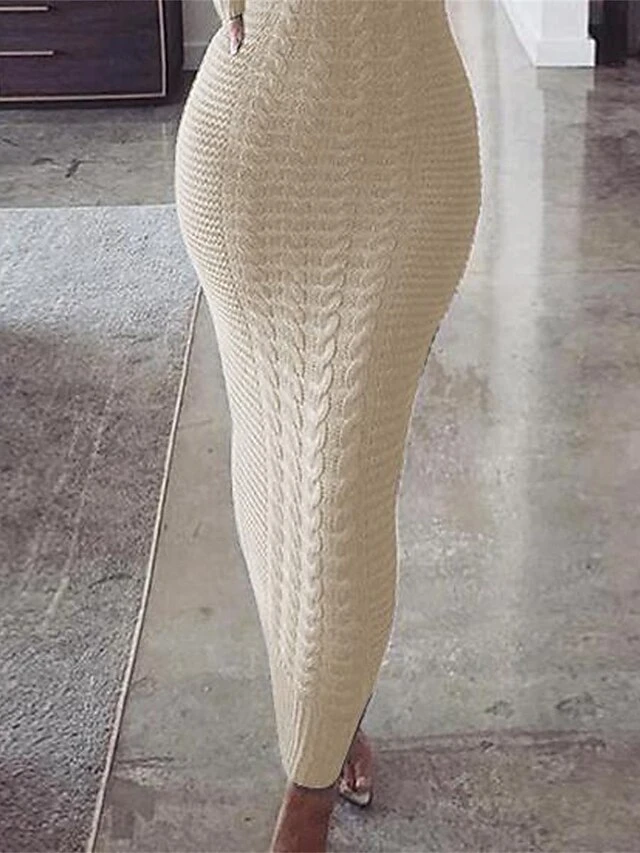 Women’s Sweater Dress Winter Dress Jumper Dress Long Dress Maxi Dress Split Outdoor Street Daily Fashion Sexy Stand Collar Long Sleeve 2023 Slim Beige Gray Color S M L XL XXL Size