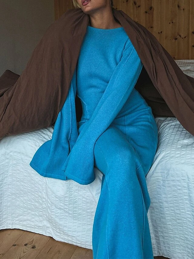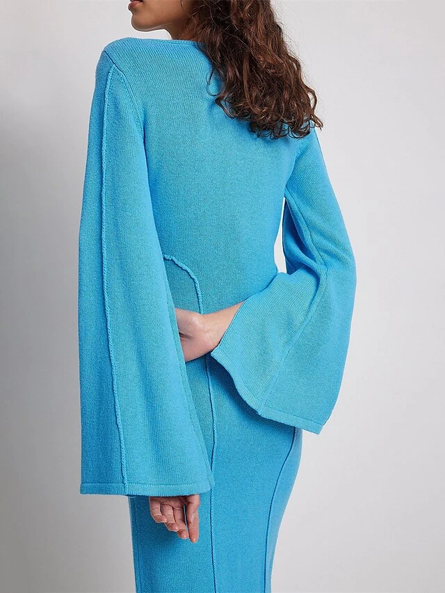 Women’s Sweater Dress Winter Dress Jumper Dress Long Dress Maxi Dress Split Street Daily Holiday Fashion Streetwear Crew Neck Long Sleeve 2023 Regular Fit Sky Blue Color S M L Size