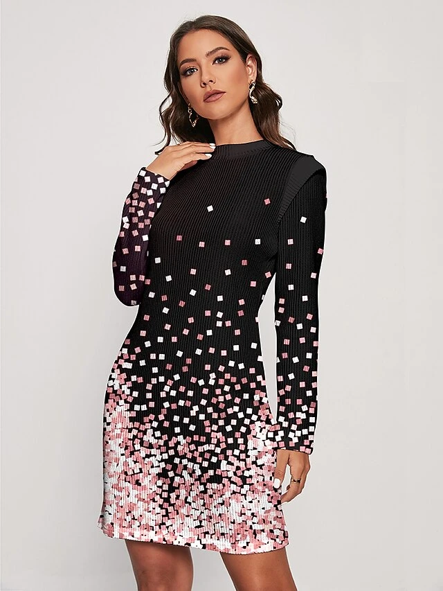 Women’s Sweater Dress Winter Dress Jumper Dress Midi Dress Warm Polka Dot Outdoor Daily Holiday Vacation Round Neck Long Sleeve 2023 Regular Fit Pink Green S M L XL XXL 3XL
