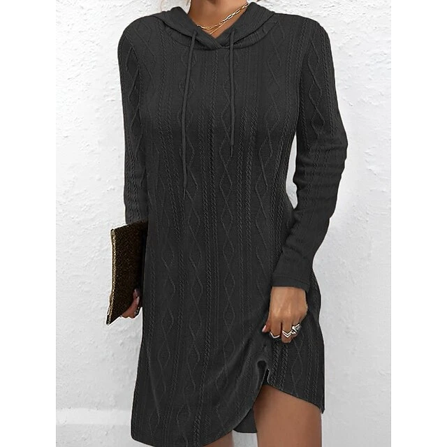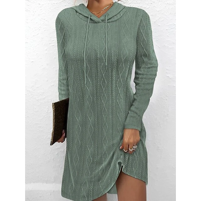 Women’s Sweater Dress Winter Dress Jumper Dress Mini Dress Lace Up Ribbed Street Daily Holiday Fashion Modern Hooded Long Sleeve 2023 Loose Fit Dark Brown Pea Green Black Color S M L XL 2XL Size