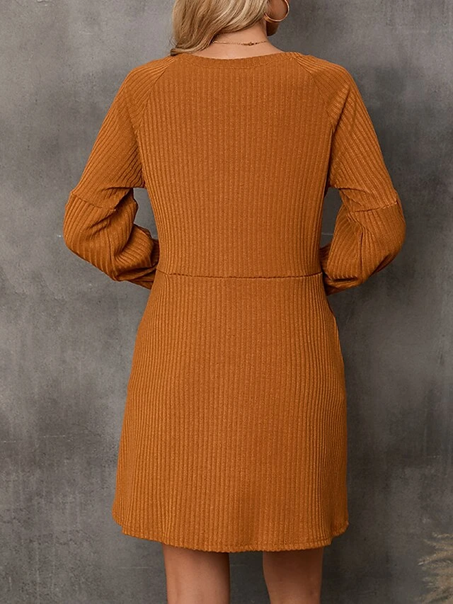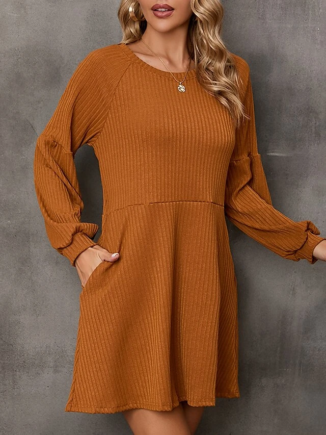 Women’s Sweater Dress Winter Dress Jumper Dress Mini Dress Patchwork Pocket Outdoor Street Daily Active Fashion Crew Neck Long Sleeve 2023 Loose Fit Black Pink Wine Color S M L XL Size