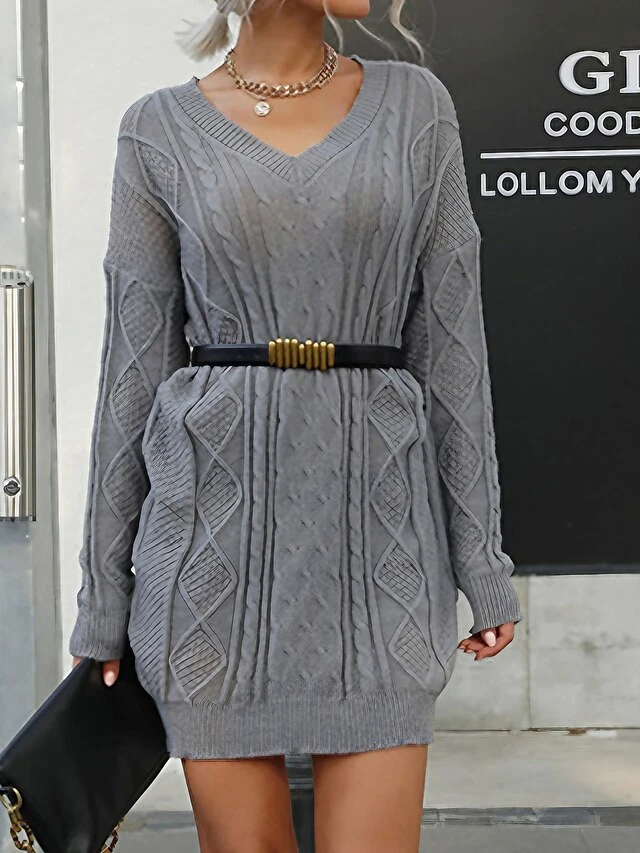 Women’s Sweater Dress Winter Dress Jumper Dress Mini Dress Ruched Outdoor Street Daily Fashion Streetwear V Neck Long Sleeve 2023 Loose Fit Gray Color S M L Size