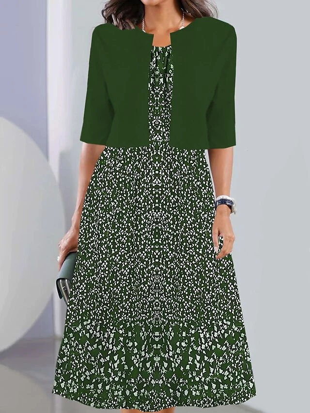Women’s Two Piece Dress Set Casual Dress Chiffon Dress Daily Going Out Fashion Streetwear Pocket Print Midi Dress Crew Neck Half Sleeve Floral Loose Fit Yellow Wine Navy Blue Summer Spring S M L XL