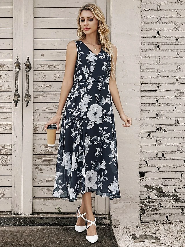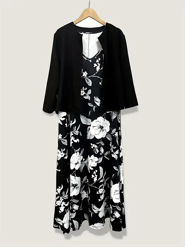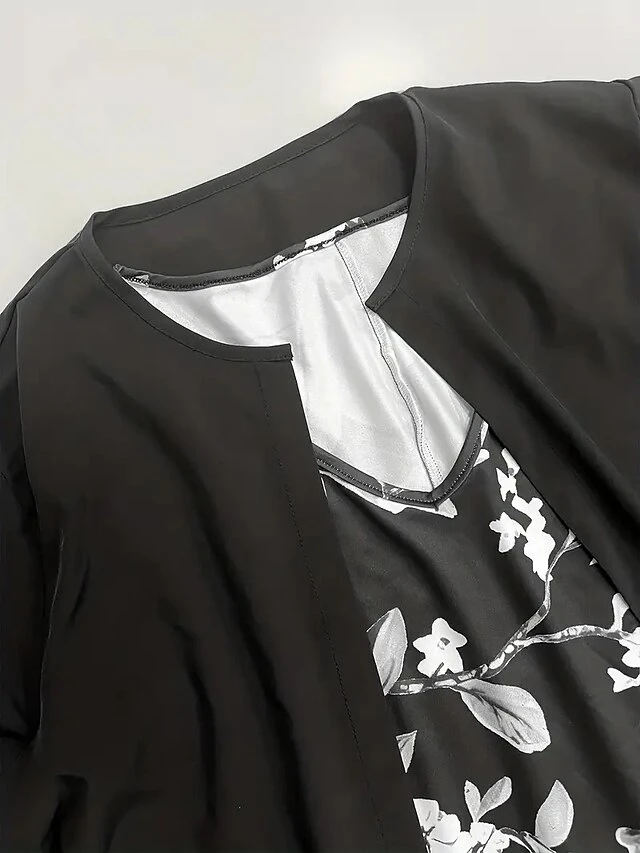 Women’s Two Piece Dress Set Casual Dress Chiffon Dress Outdoor Daily Fashion Elegant Print Midi Dress V Neck Half Sleeve Floral Regular Fit Black Pink Gray Summer Spring S M L XL XXL