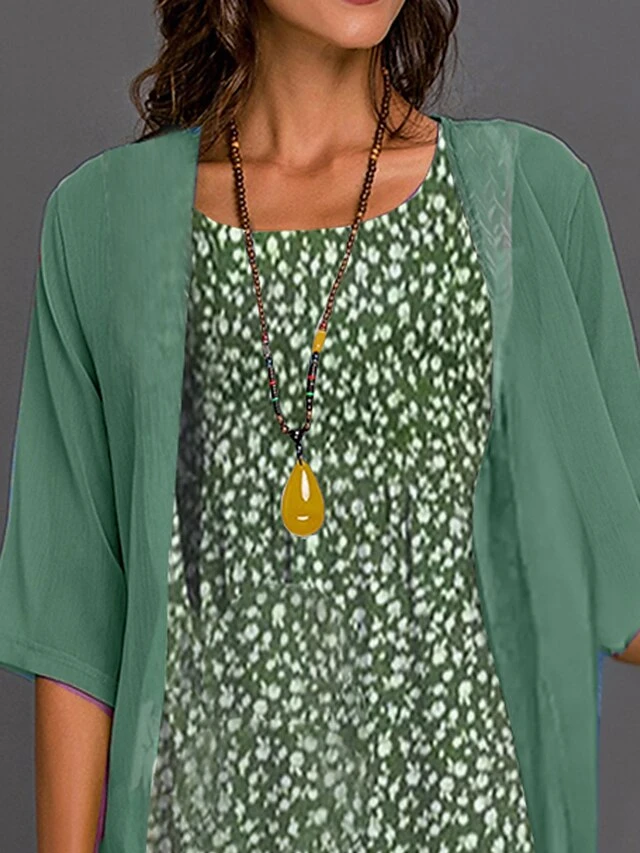 Women’s Two Piece Dress Set Casual Dress Floral Dress Outdoor Daily Fashion Elegant Print Midi Dress Crew Neck 3/4 Length Sleeve Floral Regular Fit White Pink Blue Summer Spring S M L XL XXL