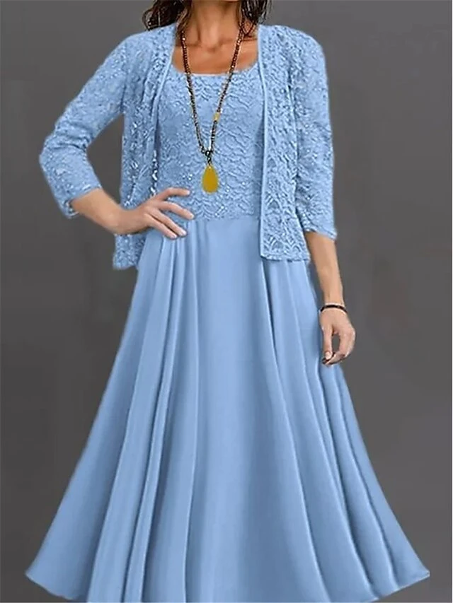 Women’s Two Piece Dress Set Casual Dress Lace Dress Outdoor Daily Fashion Elegant Lace Patchwork Midi Dress Crew Neck 3/4 Length Sleeve Plain Regular Fit Blue Fall Winter S M L XL XXL