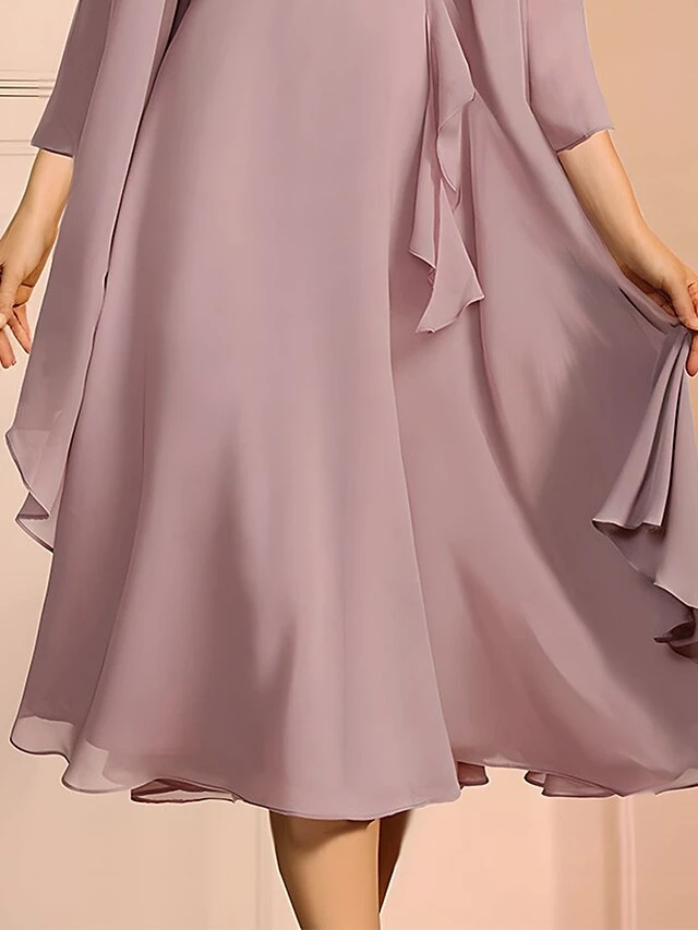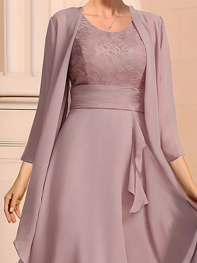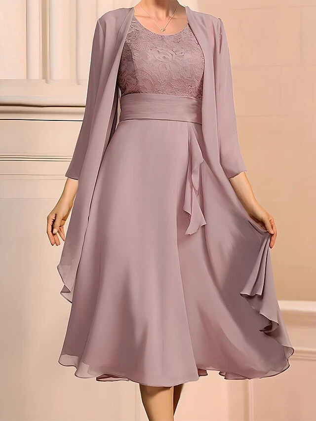 Women’s Two Piece Dress Set Casual Dress Lace Dress Outdoor Daily Fashion Elegant Lace Ruffle Midi Dress Crew Neck 3/4 Length Sleeve Plain Regular Fit Purple Summer Spring S M L XL XXL