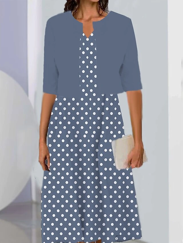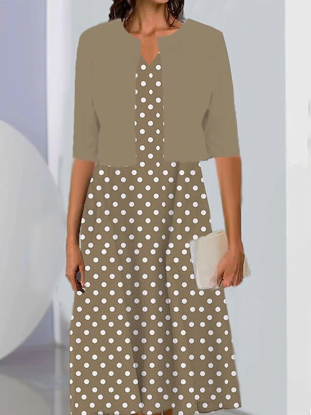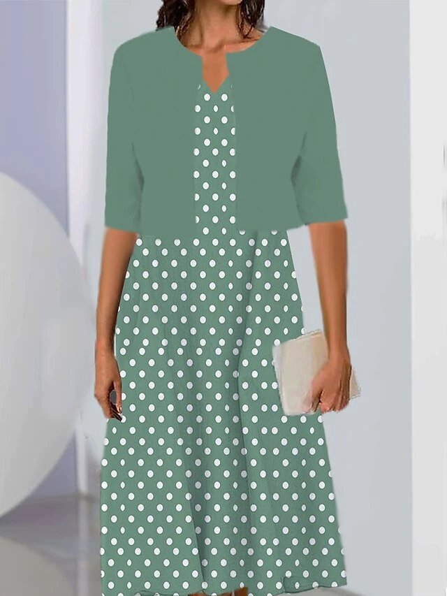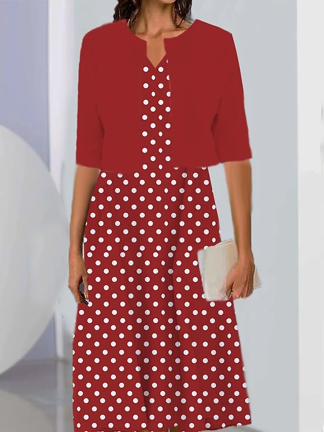 Women’s Two Piece Dress Set Casual Dress Print Dress Outdoor Daily Fashion Elegant Print Midi Dress V Neck Half Sleeve Polka Dot Regular Fit Black Pink Wine Summer Spring S M L XL XXL