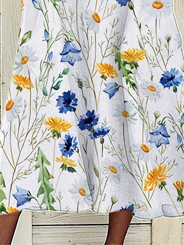 Women’s Two Piece Dress Set Casual Dress Print Dress Outdoor Daily Fashion Modern Button Pocket Midi Dress V Neck Half Sleeve Floral Regular Fit Yellow Summer Spring S M L XL XXL