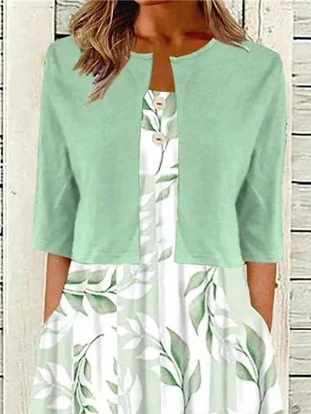 Women’s Two Piece Dress Set Casual Dress Print Dress Outdoor Daily Fashion Streetwear Print Midi Dress Crew Neck Half Sleeve Floral Regular Fit Green Summer Spring S M L XL XXL
