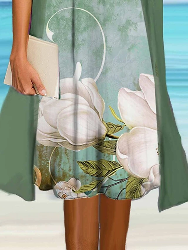 Women’s Two Piece Dress Set Casual Dress Shift Dress Outdoor Daily Fashion Casual Print Midi Dress Crew Neck 3/4 Length Sleeve Floral Loose Fit Light Green Green Summer Spring S M L XL XXL