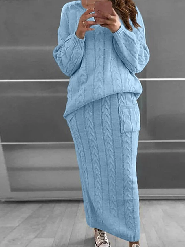 Women’s Two Piece Dress Set Casual Dress Skirt Set Daily Holiday Fashion Streetwear Pocket Ribbed Long Dress Maxi Dress Crew Neck Long Sleeve Plain Loose Fit Black Yellow Wine Fall Winter S M L XL XXL