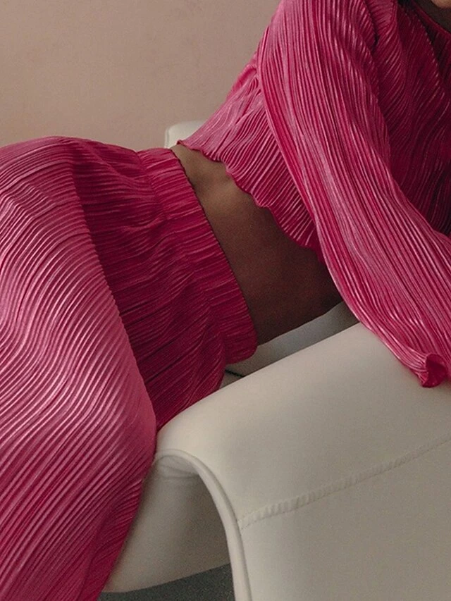 Women’s Two Piece Dress Set Casual Dress Skirt Set Outdoor Daily Fashion Streetwear Pleated Midi Dress Crew Neck Long Sleeve Plain Regular Fit Blue Green Rose Red Fall Winter S M L