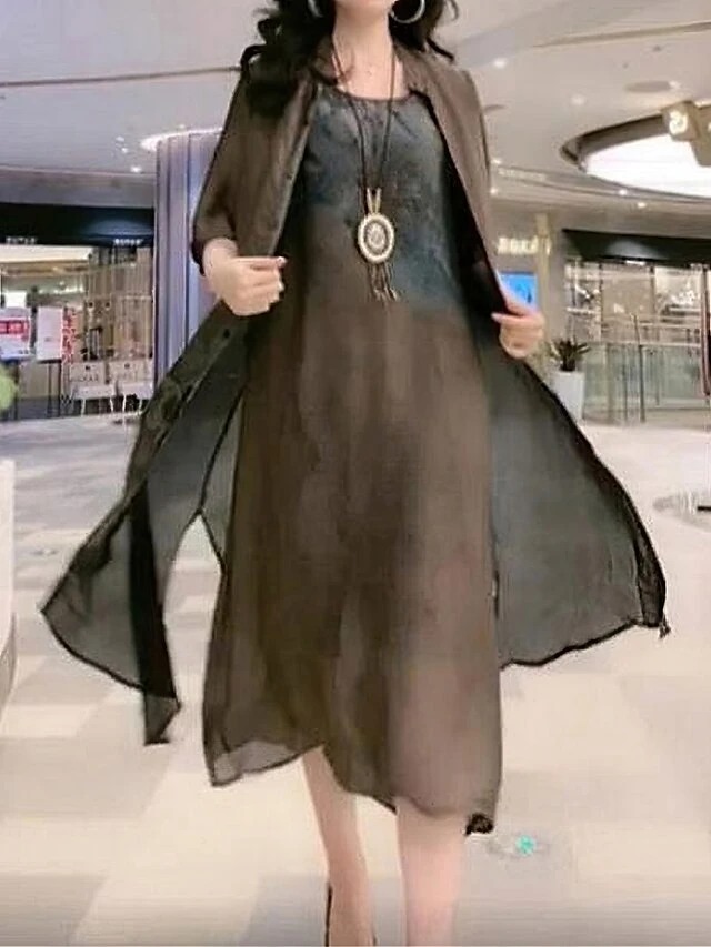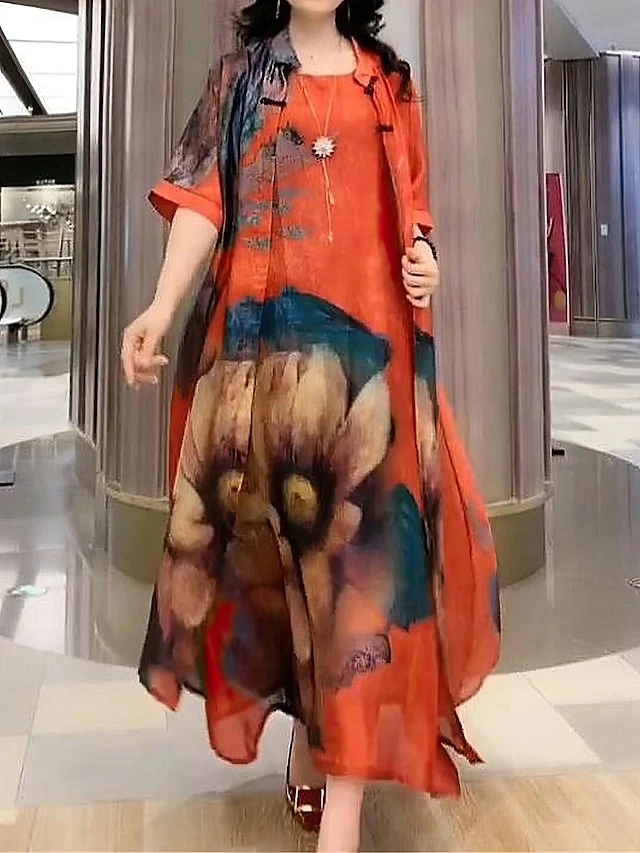 Women’s Two Piece Dress Set Casual Dress Swing Dress Daily Holiday Fashion Casual Print Midi Dress Crew Neck Half Sleeve Floral Print Loose Fit Red Blue Orange Summer Spring M L XL XXL 3XL