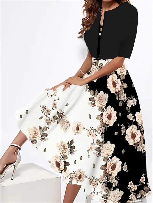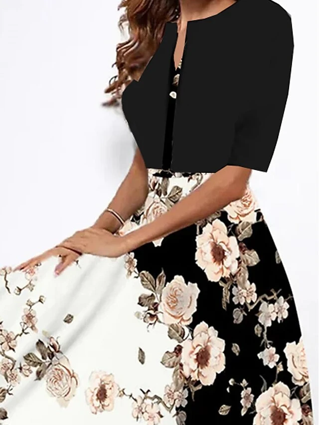 Women’s Two Piece Dress Set Casual Dress Swing Dress Outdoor Daily Fashion Modern Print Midi Dress Crew Neck Short Sleeve Floral Loose Fit Black Summer Spring S M L XL XXL