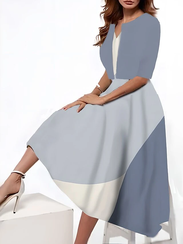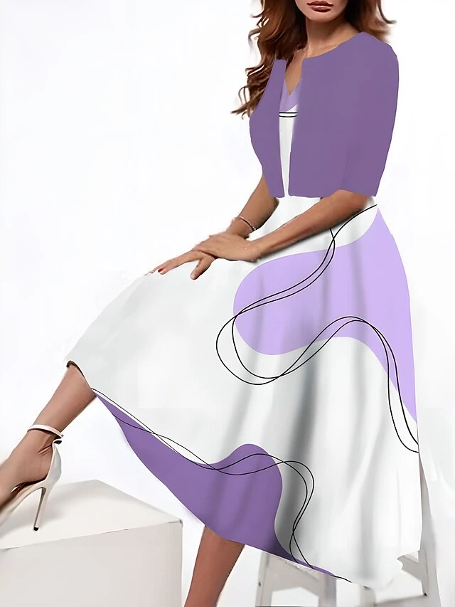Women’s Two Piece Dress Set Casual Dress Tank Dress Outdoor Daily Fashion Streetwear Pocket Print Midi Dress V Neck 3/4 Length Sleeve Geometric Color Block Regular Fit Black Blue Purple Summer Spring
